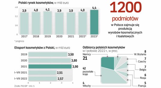 Branży urody szybko udało się odrobić spadki zagranicznej sprzedaży wywołane przez wojnę w Ukrainie i sankcje na Rosję, która wcześniej była liczącym się rynkiem dla kosmetyków Made in Poland. Chociaż po wybuchu wojny ich eksport na Wschód gwałtownie spadł, to na koniec sierpnia jego wartość sięgnęła 2,57 mld euro, czyli o 2,3 proc. więcej niż rok wcześniej – wynika z najnowszych danych z bazy GUS udostępnionych „Rzeczpospolitej” przez Zespół Analiz Sektorowych PKO Banku Polskiego.