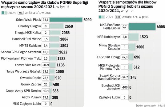 Jeśli zaś chodzi o zespoły kobiece, szczególne relacje panują w Lublinie. Miasto nie szczędzi gorsza na MKS FunFloor. Żaden klub Superligi nie może liczyć na 4-milionowe wsparcie. Na przyszły rok prezes MKS-u Bogusław Trojan będzie pewnie wnioskował o więcej, bo browar Perła przestał być sponsorem tytularnym. Ale to nie z tego powodu zespół w zeszłym sezonie nie zdobył 23. złotego medalu. Sięgnęło po niego Zagłębie Lubin. Choć ma w swej nazwie MKS, to od lat pieniędzy z ratusza nie otrzymuje. Sponsorem klubu jest bowiem KGHM Polska Miedź.