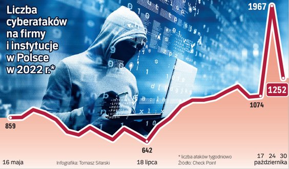 Skala wyzwań związanych z bezpieczeństwem internetowym, z którymi Polska mierzy się od początku wojny w Ukrainie, jest trudna do wyobrażenia. A wciąż przekraczane są kolejne granice. Kiedy w drugiej połowie października informowaliśmy o 1,6 tys. ataków notowanych tygodniowo na pojedyncze instytucje i firmy nad Wisłą, eksperci łapali się za głowy i mówili o historycznych poziomach. Ale ostatnie tygodnie przyniosły kolejne rekordy. Z najnowszych analiz izraelskiej firmy Check Point, które „Rzeczpospolita” publikuje jako pierwsza, wynika, że hakerzy atakują nas już średnio 2 tys. razy tygodniowo. A to oznacza, że względem choćby okresu wakacyjnego zintensyfikowali swoją działalność o niemal 100 proc.