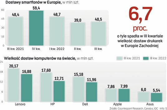 Na razie jednak trudno mówić o optymistycznych prognozach. Te na IV kwartał br. wskazują, że sprzedaż smartfonów w Europie będzie nie tylko niższa niż rok temu, ale nawet zjedzie poniżej poziomu notowanego przed pandemią. – Ogólny klimat w Europie jest wciąż ponury – przyznaje Jan Stryjak, wicedyrektor Counterpoint Research.