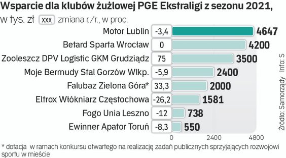 W drugą stronę poszła Częstochowa, która zmniejszyła kwotę wsparcia z 2,1 mln zł poniżej 1,6 mln zł. Mimo to tamtejszy Włókniarz w ostatnim sezonie zakończył rywalizację na 3. miejscu. Włókniarzowi w mieście wyrósł jednak też silny konkurent w postaci piłkarskiego Rakowa, który w ostatnich latach wdarł się na ekstraklasowe salony. – Za środkami na promocję poprzez sport stoją umowy, które określają świadczenia promocyjne danego klubu wobec miasta. Oczywiście, promocja poprzez sport odbywa się poprzez dyscypliny będące aktualnie sportowymi wizytówkami miasta, więc kwestia wartości promocyjnej danej dyscypliny związanej z wynikiem sportowym danego klubu ma istotne znaczenie. Z drugiej strony samorząd musi też mieć świadomość aktualnych możliwości finansowych w zakresie wydatków nieobligatoryjnych, które w ostatnich latach istotnie się kurczą – nie ukrywa Włodzimierz Tutaj, rzecznik prasowy UM Częstochowa. Jak tłumaczy, żużel jest w Polsce popularny zwłaszcza w miastach, które mają żużlowe kluby i drużyny. Ale Raków jest obecnie bardzo mocną sportową marką w ciągle najbardziej popularnej dyscyplinie, jaką jest piłka nożna. – Ta marka bardzo urosła w ostatnich dwóch sezonach, dlatego samorząd uznał, że środki na promocję poprzez piłkę nożną powinny być porównywalne z tymi na sport żużlowy. Kwoty musiały się natomiast zmieścić w ustalonym w budżecie limicie wydatków na promocję poprzez sport – mówi Tutaj.