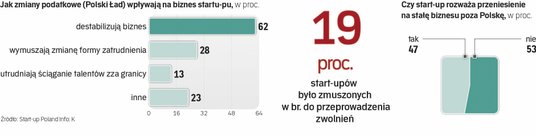 Zapowiedzi opuszczenia Polski przez 47 proc. firm zbadanych przez fundację to syrena alarmowa, że coś jednak poszło nie tak. I młodzi przedsiębiorcy wskazują co. Winą obarczają nie tylko czynniki zewnętrzne (wojna, spowolnienie gospodarcze, pandemia), ale również, a nawet przede wszystkim, działania rządu. Ich zdaniem kluczowa bariera rozwoju biznesu nad Wisłą to zbytnie skomplikowanie przepisów oraz brak stabilności prawnej i podatkowej, a także biurokracja. Blisko dwie trzecie pytanych oceniły, że zmiany wprowadzone w ramach Polskiego Ładu destabilizują ich biznes. Kolejne 28 proc. wskazuje, że nowe regulacje wymusiły na nich zmianę formy zatrudniania, a 13 proc., że ściąganie talentów zza granicy stało się dla nich trudniejsze. Do tego, w obliczu ostatnich kryzysów (gospodarczych i geopolitycznych) blisko połowa polskich firm, ankietowanych przez Startup Poland, podkreśliła, iż koszty prowadzenia ich działalności wzrosły w sposób znaczący. To podcięło im skrzydła – spółki przerzucają koszty na klientów (tak zrobiło 37 proc. start-upów) albo tną wydatki – w pierwszej kolejności na marketing i reklamę (28 proc.). Niemal co piąty badany start-up był z tego powodu już zmuszony do przeprowadzenia zwolnień. A to dopiero początek – analitycy prognozują falę bankructw w tej branży.