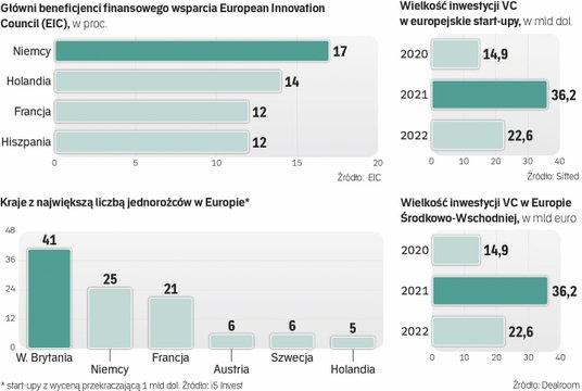 Europejska Rada ds. Innowacji (EIC), organ podległy Komisji Europejskiej, wesprze kwotą niemal 0,5 mld euro start-upy na Starym Kontynencie. Pieniądze, które mają być jednym z wielu impulsów rozwojowych dla tego typu biznesów w UE, trafią w sumie do 78 młodych spółek technologicznych z 17 krajów – ogłosiła EIC. Na liście brak jednak tych znad Wisły. Strumień funduszy omija nie tylko Polskę, ale i niemal całą Europę Środkowo-Wschodnią.