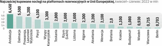 Jak wynika z analizy Eurostatu, atrakcyjność kierunków europejskich w ostatnim roku rosła wyjątkowo szybko. Jej autorzy brali w tym wypadku pod uwagę rezerwacje założone za pośrednictwem platform Airbnb, Booking.com, Expedia Group i TripAdvisor. W III kw. 2022 r., który obejmował miesiące wakacyjne, lipiec i sierpień, goście spędzili w krajach Europy ok. 251 mln nocy w kwaterach na wynajem krótkoterminowy. Stanowi to wzrost o ok. 24 proc. w porównaniu z analogicznym okresem 2021 r. Oznacza to również, że takie rezerwacje, których popularność rośnie najszybciej, bo najłatwiej jest w nich porównać ceny, przekroczyła o 9 proc. wynik z lata 2019 r., czyli ostatni sezon wakacyjny przed pandemią Covid-19, kiedy to platformy odnotowały ok. 230 mln noclegów.