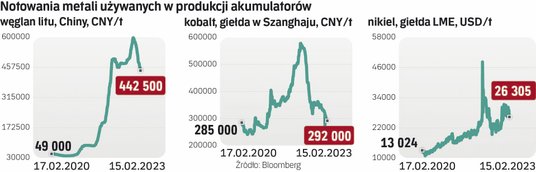 Według tej organizacji obniżać mogą się także ceny kobaltu i węglanu litu. Zapowiedzi te pojawiły się ledwie tydzień po tym, jak bank Goldman Sachs oceniał, że na notowaniach metali używanych w akumulatorach będzie ciążył wzrost ich produkcji. Na to nakłada się wpływ spowolnienia sprzedaży aut elektrycznych w Chinach.