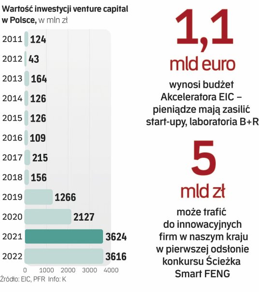 Europejska Rada ds. Innowacji (EIC) w br. rozdysponuje – między naukowców, innowatorów i przedsiębiorców – 1,6 mld euro. Start-upy o dotacje mogą się ubiegać w ramach jednego z trzech programów – akceleratora EIC. To w nim jest najwięcej pieniędzy do zgarnięcia – aż 1,13 mld euro. Trafią m.in. na wsparcie prac badawczo-rozwojowych i budowę jednorożców (młode innowacyjne firmy, których wycena przebije pułap 1 mld USD). Jak podkreśla prof. Jerzy M. Langer, ambasador EIC, to olbrzymia szansa dla spółek nad Wisłą. – Choć dotąd słabo wykorzystywana – dodaje.