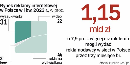 Są rozbieżności w ocenie zachowania rynku reklamy internetowej w Polsce. Według działającego na rynku reklamy i marketingu Publicis Groupe w pierwszym kwartale bieżącego roku wydatki na to medium w naszym kraju wyniosły około 1,15 mld zł, czyli o 7,8 proc. więcej niż w analogicznym okresie 2022 r. W sumie cały rynek reklamy wg Publicis Groupe powiększył się w minionym kwartale o 6 proc., do 2,53 mld zł. Tymczasem Jacek Świderski, prezes Wirtualna Polska Holding, właściciela portalu Wp.pl, podczas omawiania wyników holdingu za pierwsze trzy miesiące br. wskazał w tym tygodniu, że rynek lekko się skurczył i dopiero w kolejnych kwartałach może rosnąć. Podkreślał, że to tendencja zgodna z PKB, który również miał być pod kreską.