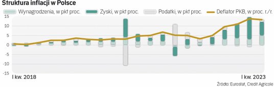 Z analizy ekonomistów z Credit Agricole Bank Polska wynika, że taka ocena skali „greedflacji” jest mocno na wyrost. Owszem, według ich wyliczeń wzrost zysków firm tłumaczy większą część inflacji w ostatnich latach w Polsce (co jest spójne z danymi MFW dla strefy euro), ale to nie daje odpowiedzi na pytanie, czy wzrosła też rentowność firm. Nominalne zyski firm (oraz ich udział w PKB) mogą bowiem rosnąć nawet przy malejących marżach. Co więcej, tak się musi dziać zawsze, ilekroć marża jest stała, a koszty ogółem rosną szybciej niż koszty pracy. Stąd ekonomiści MFW w swoim artykule podkreślali, że ich ustalenia nie mogą być traktowane jako potwierdzenie tezy o istnieniu „greedflacji” w strefie euro właśnie dlatego, że nie dotyczą marż zysku. Na to, że marże te wzrosły, nie ma zresztą – jak podkreślali – silnych dowodów.