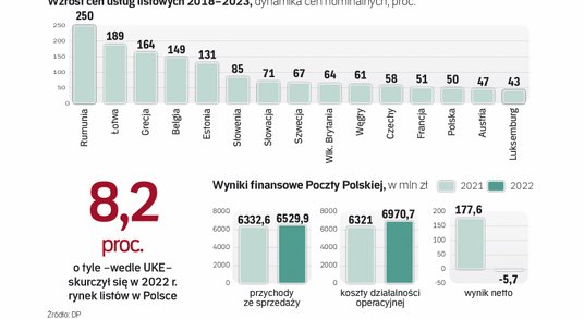 Kontrowersyjne uchwały PP to efekt kondycji finansowej, w jakiej znalazła się spółka. W centrali nie ukrywają, że obostrzenia mają związek ze znaczącym wzrostem kosztów funkcjonowania Poczty. Wynik netto operatora w ciągu ledwie roku skurczył się o ponad 180 mln zł. Firma rok 2022 zakończyła ze stratą prawie 5,7 mln zł, a koszty działalności operacyjnej w tym czasie skoczyły o 650 mln zł, czyli aż o 10 proc.