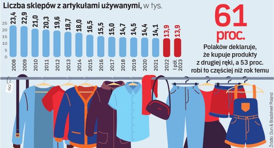 – Polacy ponownie zwrócili się ku sklepom z używanymi rzeczami, ale w przeciwieństwie do lat 90. z zupełnie innych powodów. Wówczas głównie z przyczyn ekonomicznych: po pierwsze, chcieli mieć markowe ciuchy za przyzwoitą cenę. Po drugie, sklepów z dobrymi rzeczami w Polsce wówczas nie było. Na tym więc swoją popularność budowały lumpeksy – wyjaśnia Tomasz Starzyk, rzecznik wywiadowni Dun & Bradstreet Poland.