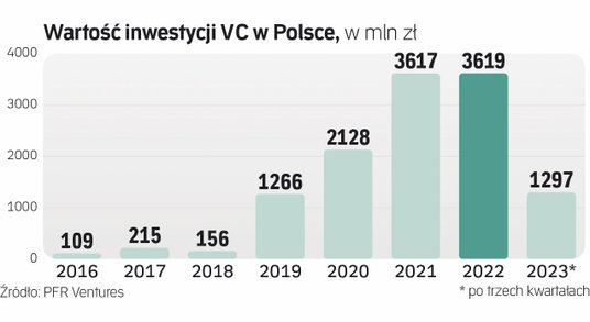 Eksperci wskazują, że zapanowała posucha w finansowaniu zwłaszcza spółek na późniejszym etapie rozwoju, gdy potrzeba większych inwestycji na ekspansję. Sytuacja nad Wisłą jest w efekcie taka, że – nawet jeśli w IV kwartale br. uda się funduszom VC zrobić świetny wynik – nie ma co liczyć, że pod względem wartości transakcji przebijemy w całym 2023 r. pułap 2 mld zł. A to, jak zauważają analitycy, w najlepszym wypadku oznacza, iż rynek venture capital w Polsce skurczy się aż o jedną trzecią.