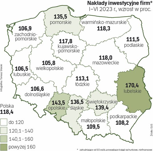 Mazowsze, Śląsk, Dolny Śląsk oraz Wielkopolska – to regiony będące od lat liderami inwestycji firm. W pierwszym półroczu przedsiębiorstwa z siedzibami w tych regionach wydały ponad 68 proc. wszystkich pieniędzy przeznaczonych na inwestycje w Polsce. Udział niespełna 70 proc. utrzymuje się od lat. Dzieje się tak bez względu na to, jak bardzo przyspieszają lub zwalniają inwestycje przedsiębiorstw z innych regionów.