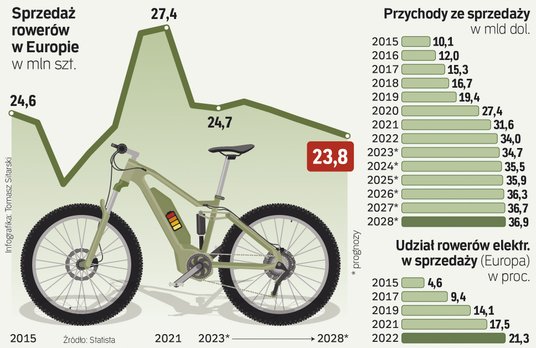 Przed pandemią rynek rowerów nad Wisłą rósł w stabilnym, kilkunastoprocentowym tempie. Okres covidu sprawił, że popyt wystrzelił. Gdy przyszło ostre hamowanie, wiele firm obudziło się w innej rzeczywistości. – Przedsiębiorcy liczyli, że okres prosperity będzie trwał, zatowarowywali się, nie bacząc, że rynek osiągnął pewien poziom nasycenia i zaczyna wracać na stare tory. Doszło do przeszacowania i podaż całkowicie rozminęła się z popytem – wyjaśnia Seidel. – W czasie pandemii popyt przewyższał podaż, teraz jest odwrotnie – kontynuuje.