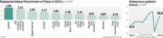 W TOP 5 ubiegłorocznych hitów są następnie „Oppenheimer” (UIP, 1,92 mln widzów), „Chłopi” (Next Film, grupa Agory, 1,77 mln) oraz „Avatar: Istota wody” (Disney, 1,62 mln).