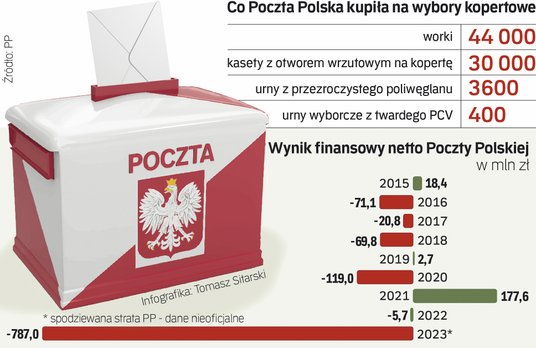 Poseł Dariusz Joński, przewodniczący sejmowej Komisji śledczej ds. wyborów kopertowych, ujawnił dokument z kwietnia 2020 r. podpisany przez byłego prezesa Poczty Polskiej Tomasza Zdzikota, z którego wynika, że państwowy operator poniósł koszty przekraczające 88,2 mln zł. Tymczasem rekompensata, jaką spółka otrzymała, jest o 35 mln zł niższa. Z naszych informacji wynika, że Krajowe Biuro Wyborcze (KBW) wciąż nie zapłaciło Poczcie Polskiej niemal 14 mln zł. A to nie koniec kosztów, jakie znajdująca się w fatalnej kondycji finansowej firma, licząca dziś każdy grosz, poniosła w związku z organizacją korespondencyjnych wyborów prezydenckich w 2020 r., które finalnie się nie odbyły.