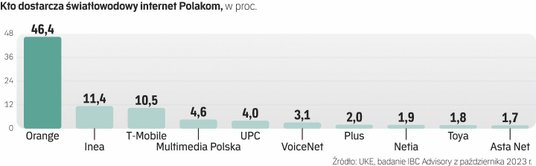 Dane Urzędu Komunikacji Elektronicznej wskazują, że tam, gdzie jest zasięg światłowodu, korzysta z niego 42,1 proc. gospodarstw domowych. Z kolei według organizacji FTTH Council przytoczonych przez Pawła Biardę, światłowodowy internet (nie tylko zbudowany z POPC) wykorzystuje w sumie 40 proc. domostw w naszym kraju. To wynik słabszy niż średnia dla krajów Unii Europejskiej i Wielkiej Brytanii (53 proc.).
