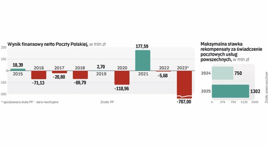 Poczta wysłała do MAP wniosek o wypłacenie jej rekompensaty za straty poniesione w czasie pełnienia funkcji operatora wyznaczonego w latach 2021–2022. Chodzić ma o niebagatelną kwotę około 700 mln zł. Dowiedzieliśmy się, że resort przekazał już wniosek do weryfikacji Urzędowi Komunikacji Elektronicznej (UKE), a regulator zaakceptował go i odesłał do resortu, dając tym samym zielone światło do dokonania przelewu. To oznacza, że spełniono już wszystkie wymogi znowelizowanej ustawy prawo pocztowe i nic nie blokuje wysłania pocztowcom należnych im pieniędzy. Teraz to, kiedy PP otrzyma wypłatę z budżetu państwa, zależy już tylko od MAP. Zapytaliśmy i MAP, i Ministerstwo Finansów, kiedy dojdzie do przelania milionów z budżetu na konta spółki, ale oba resorty nie chciały odpowiedzieć.