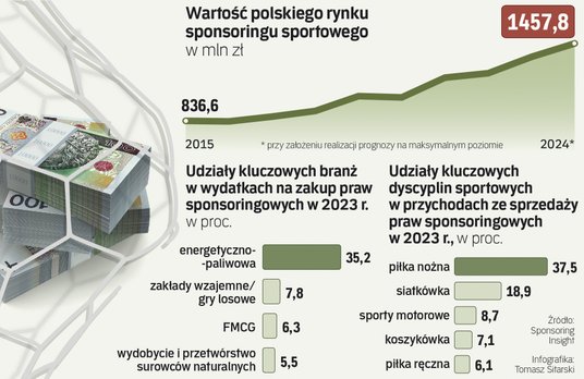 Cały czas niekwestionowanym liderem wśród krajowych dyscyplin sportowych, najmocniej wspieranych przez biznes, jest piłka nożna. W ubiegłym roku spółki przeznaczyły na jej wsparcie ponad 0,5 mld zł. Znacznie mniej, bo połowę tego, wydatkowały na sponsoring siatkówki. Na podium znalazły się jeszcze sporty motorowe (w zestawieniu Sponsoring Insight bez żużla), na które przeznaczono prawie 120 mln zł. Dużo mniej – w przedziale 50–100 mln zł – wydatkowano już kolejno na koszykówkę, piłkę ręczną, ruch olimpijski i żużel.
