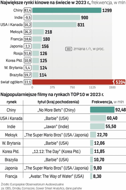 Najwięcej biletów kupili w ubiegłym roku widzowie w Chinach, Indiach i Ameryce Północnej. Za nimi plasują się Meksyk, Francja (jedyna w pierwszej dziesiątce z krajów Unii Europejskiej), Japonia, Rosja, Korea Południowa oraz Brazylia.