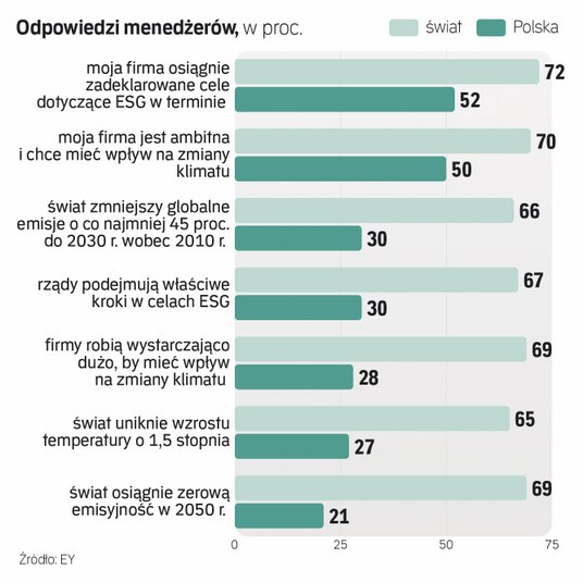 Bardziej ambitne podejście przedsiębiorstw do ESG może przyczynić się do osiągnięcia przewagi konkurencyjnej na rynku – takie wnioski płyną z czwartej edycji badania EY, które „Rzeczpospolita” opisuje jako pierwsza. Wyniki wpisują się w niepokojący szerszy obraz, z którego wynika, że ESG jest nadal traktowane jako obowiązek wynikający z przepisów, a nie szansa na budowę długofalowej strategii, opartej na zrównoważonych wartościach.