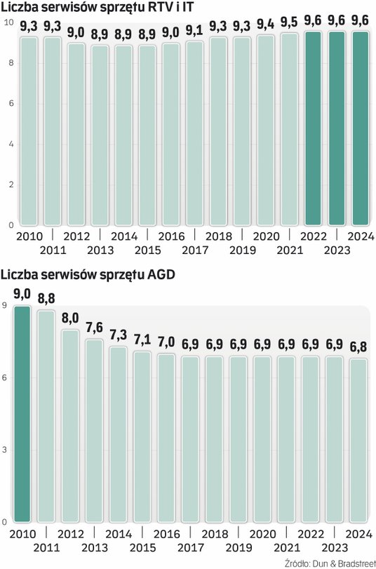 Jeszcze w 2010 r. liczba punktów naprawy sprzętu elektronicznego, telekomunikacyjnego, AGD czy komputerów przekraczała 18 tys. – wynika z danych Dun & Bradstreet Poland zebranych specjalnie dla „Rzeczpospolitej”.