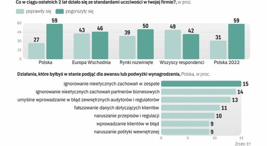 Co drugi ankietowany (49 proc.) twierdzi, że w jego firmie są menedżerowie, którzy poświęciliby uczciwość dla krótkoterminowych prywatnych wpływów. To także wynik istotnie wyższy niż w krajach rozwiniętych (39 proc.), a także krajach Europy Wschodniej (41 proc.).