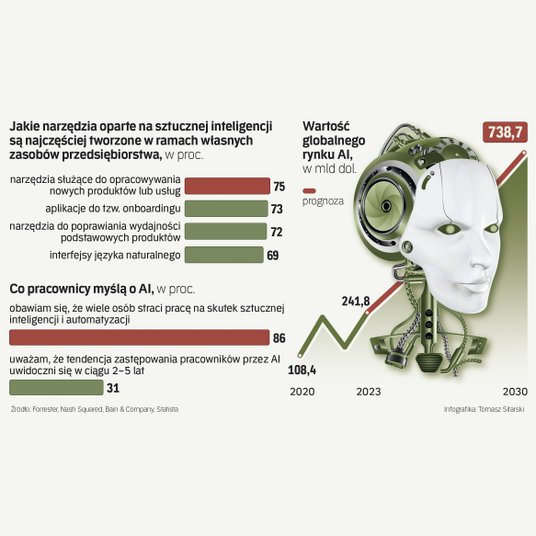 Jak wynika z raportu firmy konsultingowej Bain & Company, większość przedsiębiorstw i instytucji przeszła już pierwszą fazę eksperymentowania z rozwiązaniami opartymi na sztucznej inteligencji i wchodzi w kolejny etap – wdrażania tej technologii. Badania pokazują, iż aż 87 proc. przedsiębiorstw opracowuje, pilotuje lub w pewnym zakresie wdrożyło generatywną sztuczną inteligencję. Według Bain & Company wydatki firm na systemy AI średnio sięgają już ok. 5 mln dol. na podmiot.