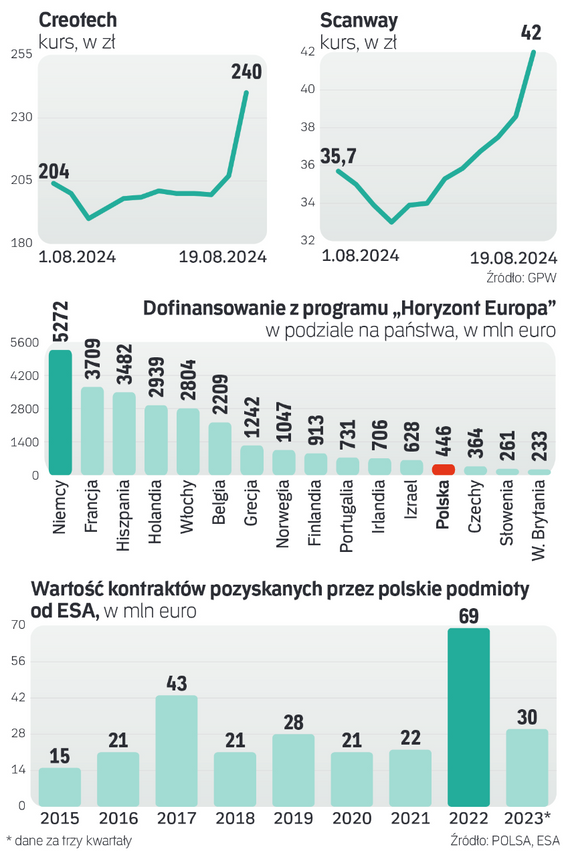 Akcje spółki Creotech Instruments były w poniedziałek najlepszą inwestycją na warszawskiej giełdzie. Kurs wystrzelił kilkanaście procent w górę na wieść o sukcesie satelity EagleEye, stworzonego przez konsorcjum przemysłowo-naukowe, którego liderem jest właśnie Creotech. To przełomowy moment. Okazuje się, że jako kraj jesteśmy już w stanie tworzyć całe misje kosmiczne, a nie tylko wybrane podsystemy do większych urządzeń zagranicznych firm.