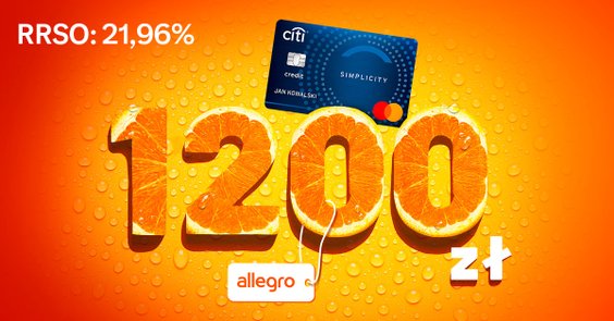 Aby skorzystać z tej promocji, należy w ciągu pierwszego miesiąca po miesiącu zawarcia umowy zarejestrować kartę w programie Bezcenne Chwile oraz w Apple Pay lub Google Pay. Następnie za każdy miesiąc w ciągu pierwszych sześciu miesięcy, w którym wykona się kartą Citi Simplicity, za pomocą Google Pay lub Apple Pay, przynajmniej pięciu transakcji na łączną kwotę minimum 200 zł, otrzyma się 8 tys. punktów w programie Bezcenne Chwile. To m.in. równowartość 100 zł w voucherach na Allegro. Łatwo policzyć, że maksymalnie przez tych sześć miesięcy można zyskać łącznie równowartość 600 zł.