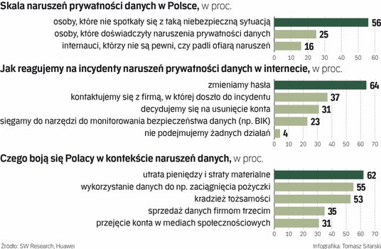Ryzyko nieświadomego udostępniania wrażliwych informacji w internecie stale rośnie. O skali problemu może świadczyć fakt, że co czwarta osoba w naszym kraju już padła ofiarą naruszenia prywatności danych. Badanie SW Research, które „Rzeczpospolita” opisuje jako pierwsza, pokazuje, że w sieci zachowujemy się naiwnie lub cechuje nas lenistwo. To dlatego co trzeci internauta nie dostrzega istotnych zapisów, takich jak udostępnianie jego danych firmom trzecim. Użytkownicy nie zwracają również uwagi na aspekt przechowywania ich danych przez nieokreślony czas (30 proc.).