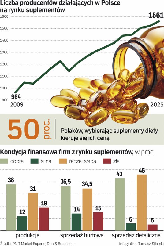 – Przeciętny Polak wydaje na suplementy diety ponad 200 zł rocznie. Jest to relatywnie wysoka kwota, wskazująca na utrzymującą się dużą skalę konsumpcji w tej kategorii – zarówno ze względu na popularność preparatów wspierających odporność, witamin i minerałów, jak i produktów związanych ze stylem życia czy aktywnością fizyczną – ocenia Marta Marszałek, główny analityk rynku farmaceutycznego i ochrony zdrowia w PMR Market Experts by Hume’s.