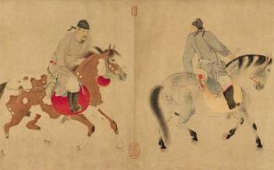 Dzieło, które jest zatytułowane "Pięciu pijanych książąt wracających na koniach", zostało zabrane z cesarskiej kolekcji Zakazanego Miasta w Pekinie w 1922 roku. Wywiózł je ostatni chiński cesarz Pu Yi, po upadku dynastii Qing i wprowadzeniu republiki.