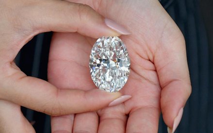 102,39-karatowy diament, nieskazitelny biały brylant, jest drugim co do wielkości owalnym diamentem tego typu, który zostanie wystawiony na aukcji - informuje agencja Reutera.