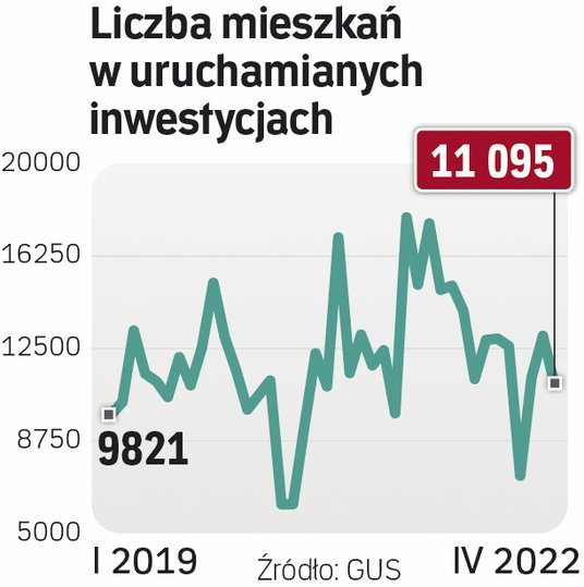 W kwietniu deweloperzy rozpoczęli budowę 11,1 tys. mieszkań, o 37 proc. mniej rok do roku, a licząc po czterech miesiącach – 42,8 tys. lokali, o 23 proc. mniej niż rok wcześniej. Dane GUS mogłyby świadczyć o mocnym hamowaniu, ale bazą są rekordowe dla budownictwa mieszkaniowego miesiące. Wyniki z lutego, marca i kwietnia br., zestawione z miesiącami sprzed ubiegłorocznego boomu, wyglądają stabilnie – a przecież otoczenie jest trudne: rosną stopy procentowe, spada zdolność kredytowa i popyt, rosną koszty wykonawstwa, inflacja, a wojna w Ukrainie podtrzymuje niepewność.