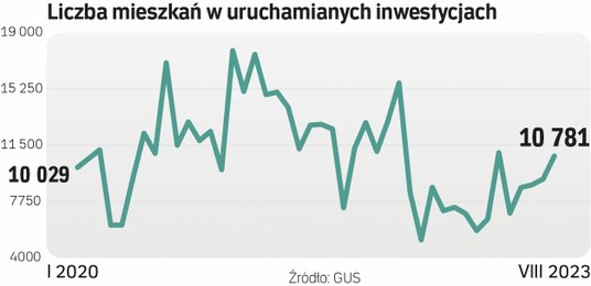 Tempo jest coraz żwawsze: wobec lipca wzrost sięga 16 proc. Porównanie rok do roku robi wrażenie – wzrost wynosi 107 proc. – ale wynika z niezwykle niskiej bazy. W ciągu ośmiu miesięcy br. deweloperzy ruszyli z budową 68 tys. lokali, o 20 proc. mniej niż w analogicznym okresie 2022 r.