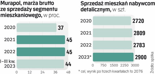 Zarząd tłumaczy to ofertą. Murapol buduje mieszkania dostępne cenowo (po trzech kwartałach br. średnio 394 tys. zł, 8,3 tys. zł za mkw.), kompaktowe (rzędu 45 mkw.) – wskazuje, że w czasie słabszym dla rynku kredytów ofertą interesują się inwestorzy. Działając na kilkunastu rynkach Murapol jest odporniejszy na wahania koniunktury.