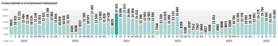 14,1 tys. lokali w rozpoczętych inwestycjach w czerwcu to o 59 proc. więcej niż rok wcześniej, kiedy produkcja dopiero zaczęła się rozkręcać na fali „Bezpiecznego kredytu” po kryzysowej jesieni, zimie i wiośnie. To także o 18 proc. więcej niż miesiąc wcześniej – w kwietniu i maju br. deweloperzy zmniejszyli aktywność po wystrzale inwestycji w lutym i marcu.