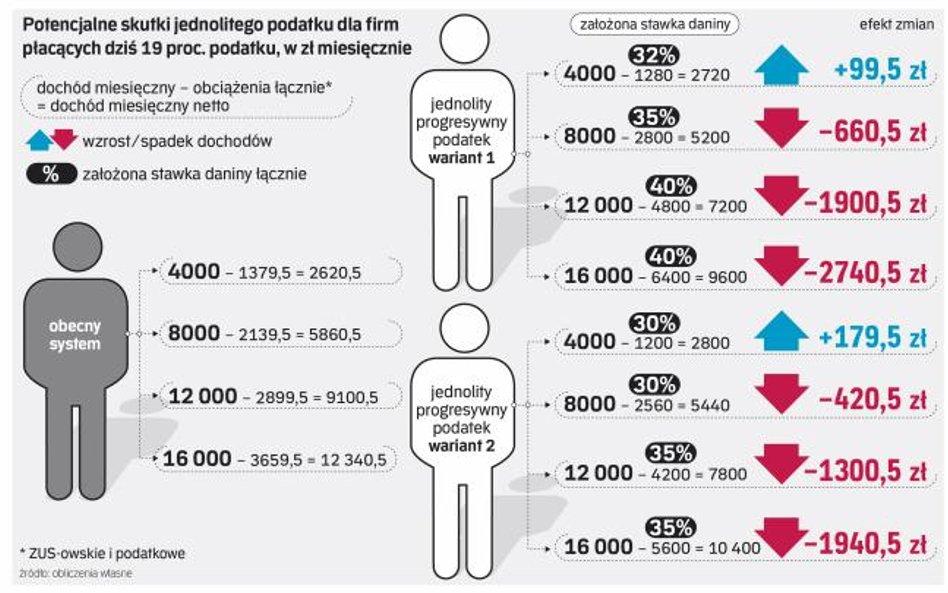 Nawet połowa samozatrudnionych płacących 19-proc. PIT może stracić na rządowych planach. Danina przeciętnej firmy może być dwa razy wyższa niż dziś.