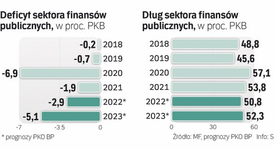 – Spodziewamy się, że deficyt całego sektora wzrośnie z ok. 4,5 proc. PKB w 2022 do ok. 7 proc. PKB w 2023 r. – mówi nam Adam Antoniak z ING Banku Śląskiego. – W 2022 r. deficyt general government będzie się kształtował na poziomie poniżej 3 proc. PKB w br., ale w 2023 r. wyraźnie się zwiększy do 5,1 proc. PKB – szacują ekonomiści PKO BP w najnowszych prognozach przedstawionych w środę.