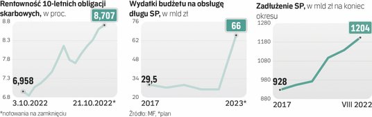 Sytuacja na rynku polskiego długu staje się coraz poważniejsza. W piątek rentowość dziesięcioletnich obligacji skarbowych na chwilę przebiła granicę 9 proc. Potem spadła do 8,7 proc., a to i tak poziom najwyższy od trzech dekad.