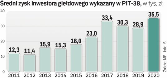 Tymczasem jak wynika z danych Ministerstwa Finansów, w 2021 r. przeciętny dochód wykazany w „giełdowych” zeznaniach podatkowych wynosił 35,5 tys. zł. W sumie z działalności na giełdzie w 2021 r. musiało rozliczyć się 379 tys. inwestorów, z czego prawie 190 tys. osób musiało zapłacić podatek. Zakładając zysk na poziomie 35,5 tys. zł, wartość zapłaconego podatku przypadającego na jednego inwestora wyniosła nieco ponad 6,7 tys. zł. Zakładając, że w życie weszłyby prezentowane założenia, przeciętny podatnik zapłaciłby 5,1 tys. zł.