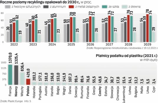 Jak dowiedzieliśmy się w Ministerstwie Środowiska, w 2021 r. Polska z tytułu podatku od plastiku zapłaciła łącznie 1,69 mld zł. W tym roku do października Ministerstwo Finansów wysłało już 1,45 mld zł, a łącznie zaplanowano do przekazania 1,751 mld zł. Opłatę tę wnoszą rządy z budżetu krajów, czyli pieniędzy podatników – do kasy UE. Dlatego resorty środowiska czy finansów bardzo nie lubią potocznej nazwy „podatek od plastiku”, bo choć teoretycznie nie jest on płacony przez konsumentów, ale jednak z ich podatków. Ile zapłacimy w przyszłym roku, tego jeszcze nie wiadomo, czekamy na prognozy Komisji Europejskiej na podstawie historycznych danych.