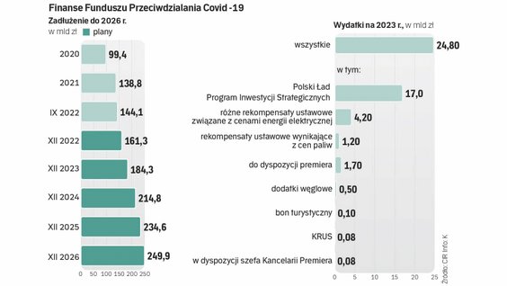 W zeszłym roku plan finansowy Funduszu Przeciwdziałania Covid-19 był modyfikowany przynajmniej 11 razy. Bank Gospodarstwa Krajowego jest jego operatorem, ale plan finansowy zatwierdza premier. Taka konstrukcja pozwala na elastyczne reagowanie na potrzeby finansowe rządu. Rząd planuje wydać niespełna 25 mld zł z FPC-19 w tym roku, pod koniec ubiegłego było to niespełna 52 mld zł. Tak przynajmniej zapisano w „modyfikacji nr 11” z połowy grudnia. Jednak w jednej z wcześniejszych wersji, z początku lata, określonej jako „zmiana nr 3" zapisano ponad 42,2 mld zł jako limit wydatków. Oznacza to, że w ciągu roku zwiększono limit możliwych wydatków o niespełna 10 mld zł. Ile rzeczywiście wydano, nie wiadomo, ponieważ jak „Rzeczpospolita” dowiedziała się z Centrum Informacyjnego Rządu, nie ma jeszcze sprawozdania finansowego za zeszły rok. W połowie grudnia było to ok. 44 mld zł.