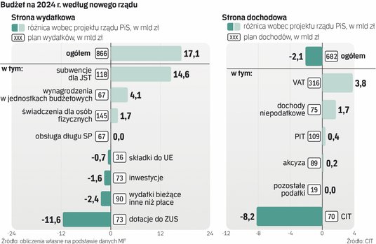 Takim powtórzonym błędem może być nadmierny optymizm, jeśli chodzi o wpływy z podatków, w tym szczególnie z podatku VAT. Według szacunków nowego ministra finansów VAT ma przynieść kasie państwa 316 mld zł dochodów, czyli o 43 mld zł więcej niż w 2023 r. (choć tu wykonanie wydaje się mocno zagrożone) oraz o 3,8 mld zł więcej, niż planował rząd PiS w swoim projekcie budżetu na 2024 r.