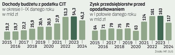 Minister finansów Andrzej Domański wyjaśnia, że o żadnym rozszczelnieniu nie ma mowy. Po prostu CIT-u w publicznej kasie jest mniej, bo pogorszyła się kondycja i wyniki finansowe przedsiębiorstw, a im mniej firmy zarabiają, tym oczywiście płacą niższy podatek. Rzeczywiście, wedle najświeższych danych za pierwsze półrocze tego roku ogółem przedsiębiorstwa w Polsce wypracowały 117 mld zł zysku brutto, czyli aż o ok. 50 mld zł mniej niż w pierwszej połowie 2023 r. oraz 2022 r. A nawet o kilka miliardów złotych mniej niż w 2021 r.