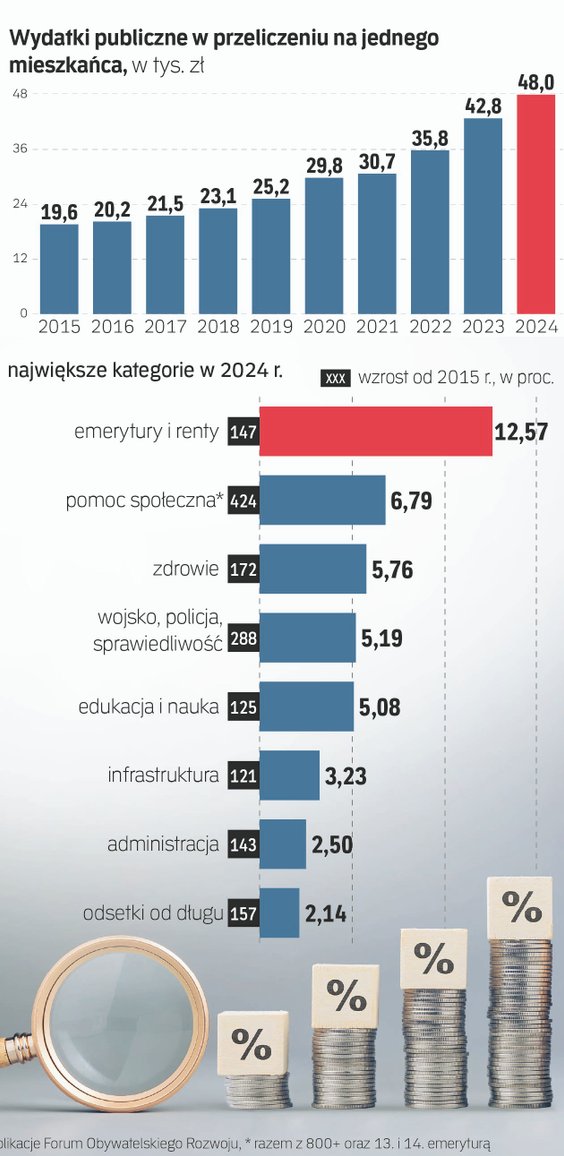 W przeliczeniu na jednego mieszkańca wydatki publiczne wyniosły w 2024 roku już niemal 48 tys. zł...