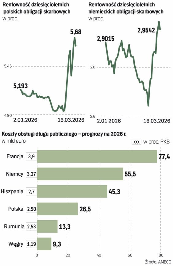 Wojna w Iranie odbija się rykoszetem również na rynku długu. Od początku marca wyraźnie wzrosły rentowności papierów rządowych, zarówno tych krótkoterminowych, jak i długookresowych. Nie tylko w Polsce, ale w całej Unii Europejskiej, a także w USA.