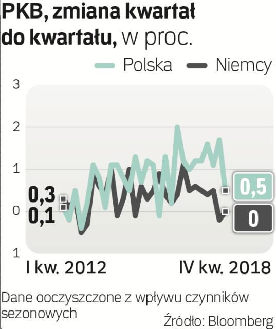 Na pierwszy rzut oka czwartkowe dane nie dają powodu do niepokoju. Wzrost produktu krajowego brutto Polski okazał się minimalnie lepszy, niż przeciętnie szacowali ekonomiści na podstawie wyników za cały 2018 r., które GUS opublikował już pod koniec stycznia, a na tle europejskim wręcz spektakularny.