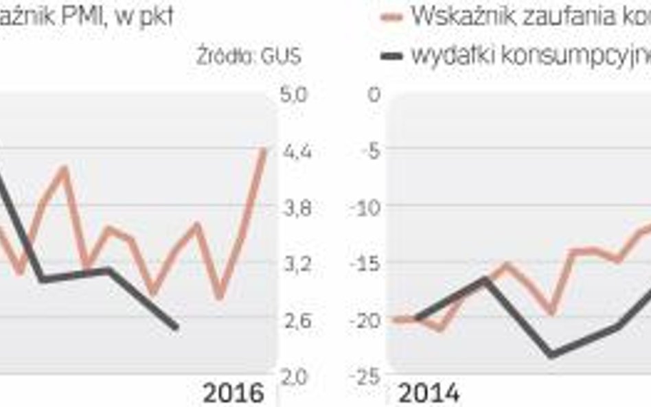 Część ekonomistów w rozmowach przyznaje jednak, że do ostrożności skłania ich to, jak rozczarowujący okazał się 2016 r. Rok temu wydawało się, że wzrost gospodarczy będzie z kwartału na kwartał przyspieszał, aż pod koniec roku zbliży się do 4 proc. Tak się nie stało. Już w III kwartale wzrost wyjamował do 2,5 proc., a IV kwartał mógł być pod tym względem jeszcze słabszy. Teraz ekonomiści nie chcą spieszyć się z deklaracjami, że przyspieszenie wzrostu jest tuż, tuż. Jednocześnie coraz mniej obawiają się tego, że spowolnienie okaże się trwałe. - Jest już chyba coraz mniej wątpliwości, że spowolnienie było przejściowe - napisał w poniedziałek na Twitterze Piotr Bujak, główny ekonomista PKO BP, odnosząc się do grudniowego wzrostu wskaźnika PMI, mierzącego aktywność w przetwórstwie przemysłowym, do najwyższego poziomu od półtora roku.