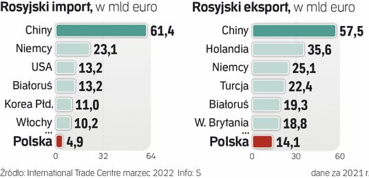 Oznacza to drugi miesiąc wzrostu cen rosyjskiego eksportu, który do tej pory dość umiarkowanie spadał pod względem ilościowym (ceny ropy, gazu, metali i surowców rolnych rosły szybciej, niż spadał ich eksport fizyczny), oraz szybsze kurczenie się importu (na niektórych rynkach, jak niemiecki, nawet o 60 proc.).